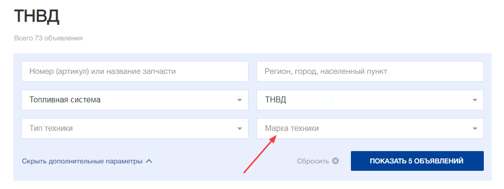 Покупатели могут искать подходящие предложения, указав в блоке фильтров номер (артикул) детали.