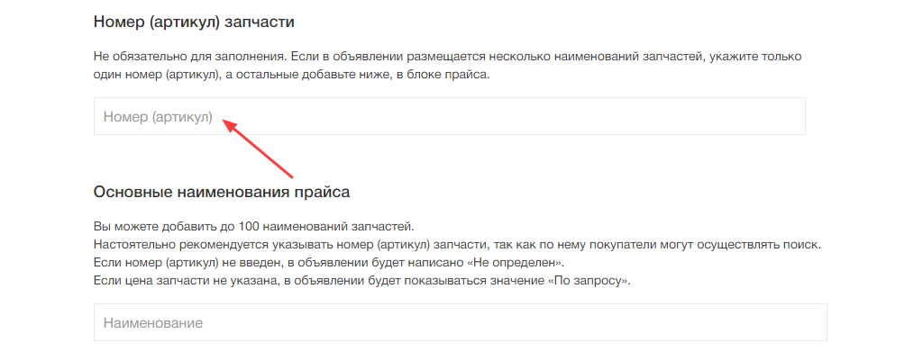 Чтобы объявление попало в результаты такого поиска, продавцам необходимо заполнять специальное поле «Номер (артикул) запчасти».